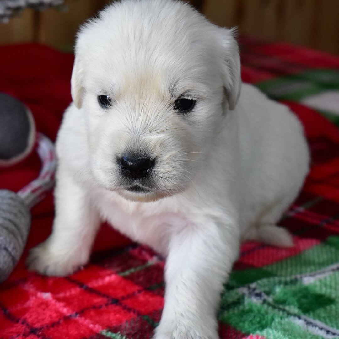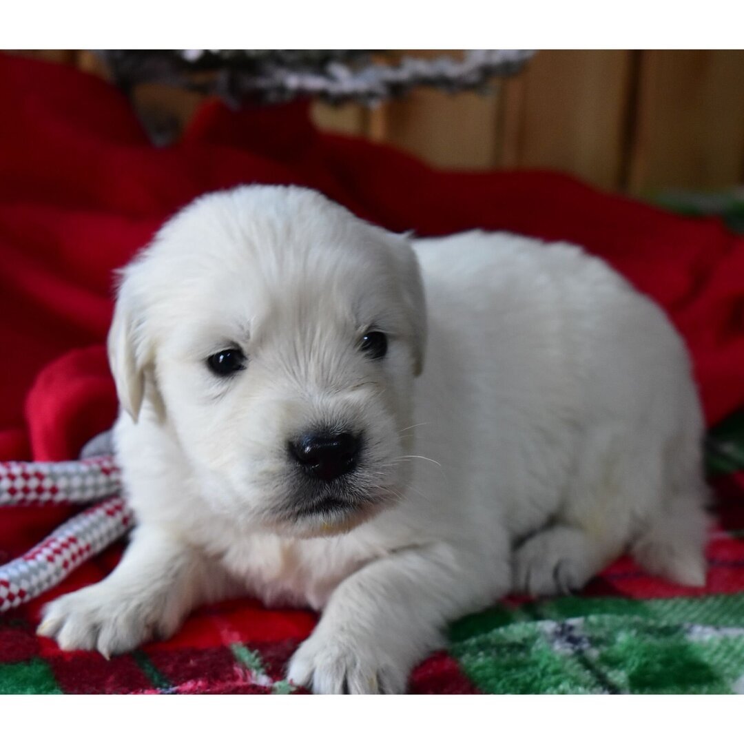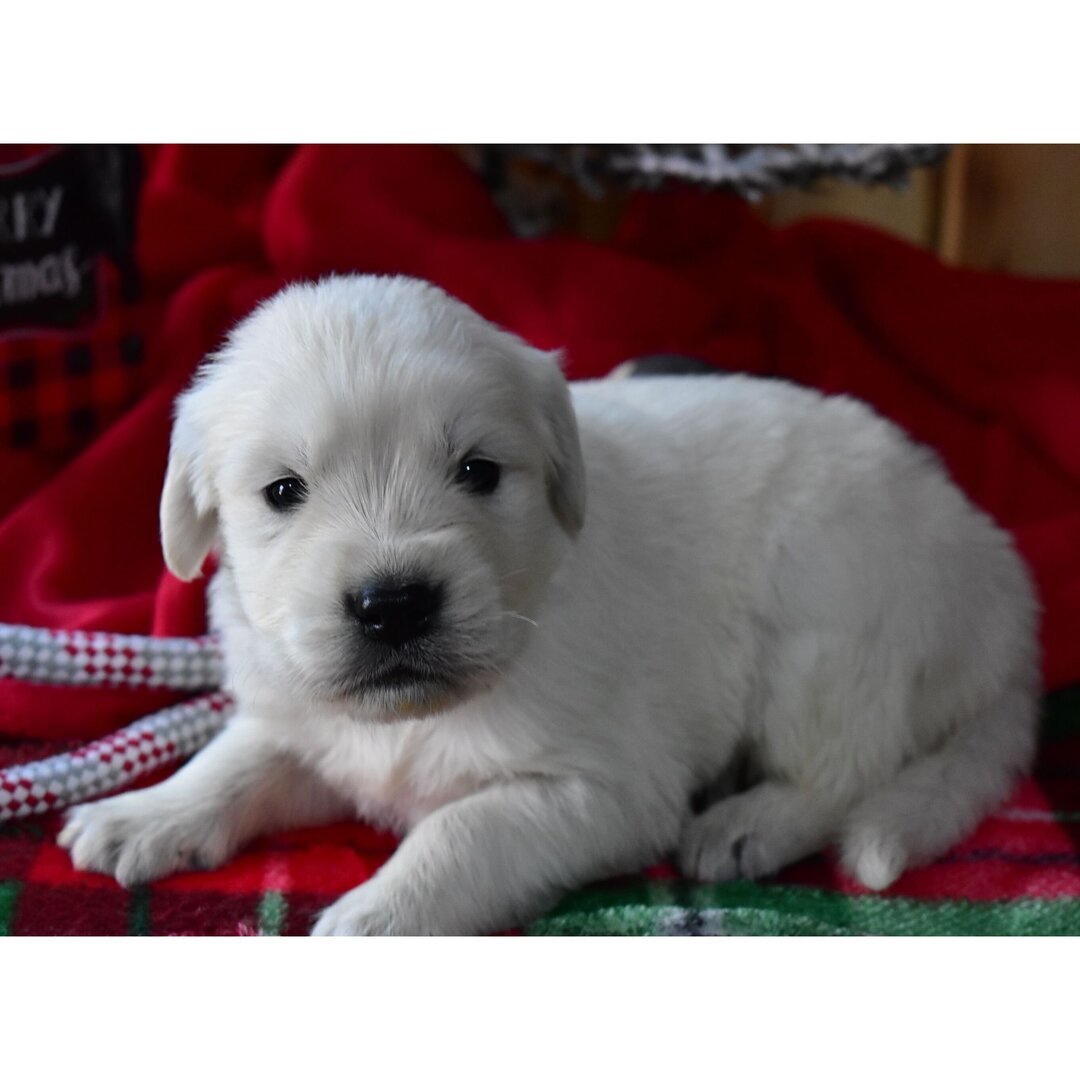 Meet Blitz, a 5-week-old English Cream Golden Retriever with a pure white coat, exceptional temperament, and AKC registration. Current on vaccinations, fully vet-checked, and ready to go home today. Adopt Blitz from AdoptGoldenRetriever.com, the most trusted source for premium Golden Retriever puppies.