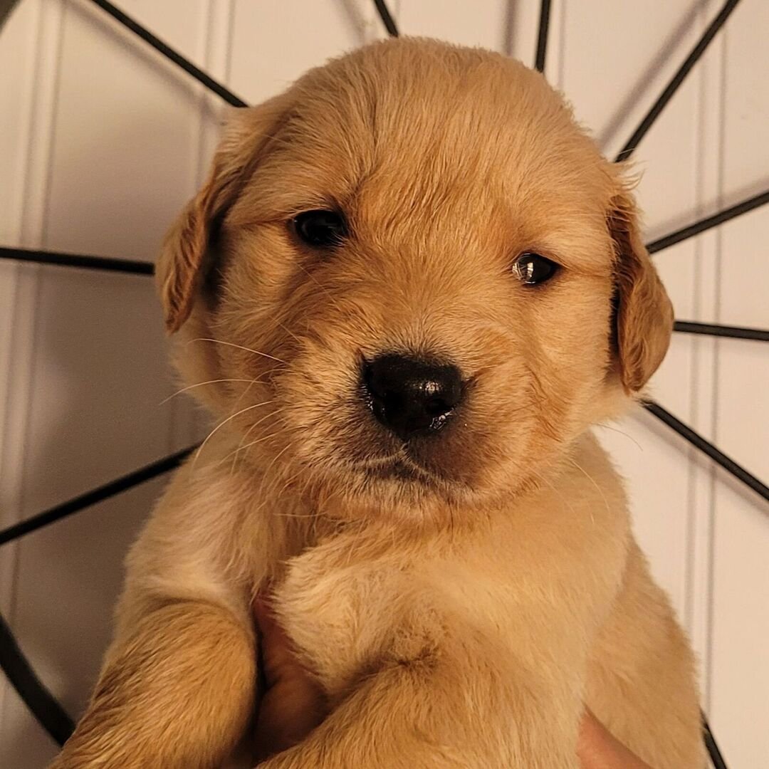 Say hello to Elsa, a stunning dark-golden female Golden Retriever puppy with a delightful temperament and a charming personality. Even at just 5 weeks old, Elsa already shows the amazing intelligence, loyalty, and sweetness that make Golden Retrievers one of the most loved breeds in the world.